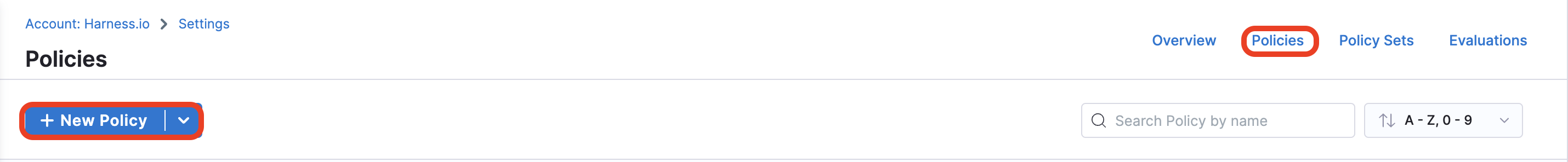 - Now go to the Policies tab and select +New Policy.