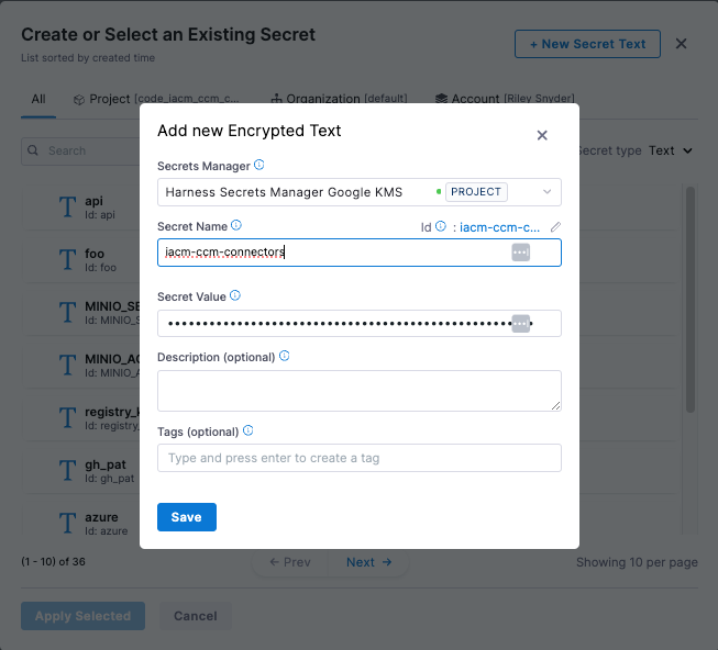 HARNESS_PLATFORM_API_KEY (secret) = New secret created from the steps above