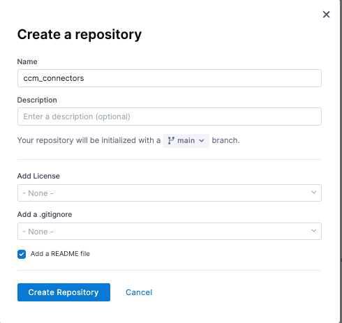 - Go into your new project and create a new Code repository. This will hold the code for our CCM connectors.